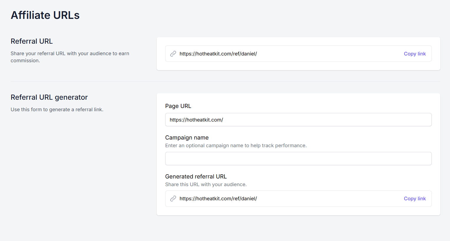 Complete our quick and easy affiliate registration. It takes just a minute or two — no complicated forms or approvals needed. Once you’re in, you’ll have full access to your personal dashboard. Get Your Unique Referral Link After logging in, head to the “Affiliate URLs” section. You’ll see your personalized Referral URL right away, something like: